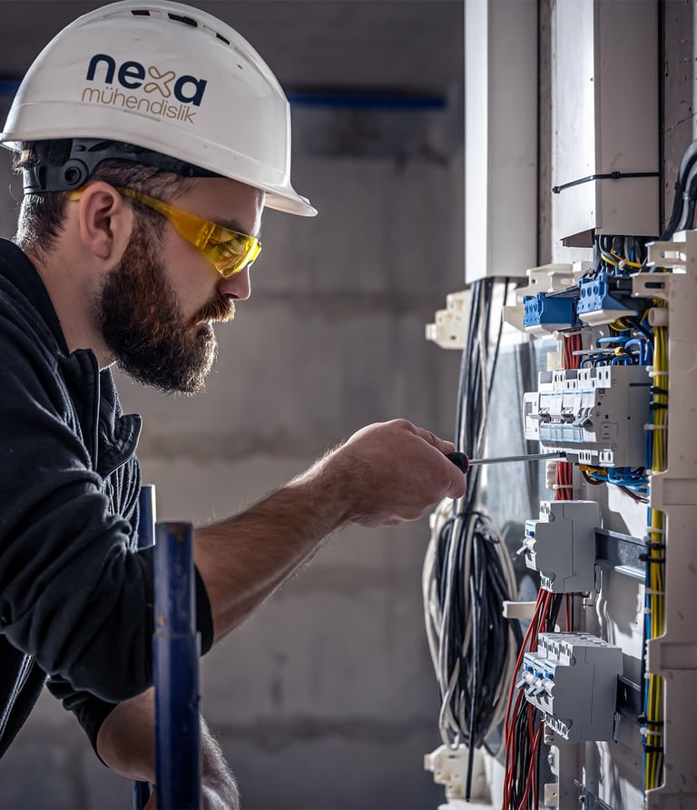 Nexa Mühendislik, elektrik ve inşaat alanlarında sunduğu kapsamlı çözümlerle projelerinizi güvenle hayata geçirir. Deneyimli mühendis kadromuz ve teknik ekibimizle; elektrik projelendirmeden orta ve yüksek gerilim uygulamalarına, trafo ve pano imalatından iç tesisat çalışmalarına kadar tüm süreçlerde profesyonel hizmet sunuyoruz.